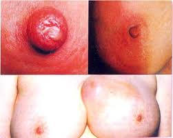 - Vú tiết dịch, bị thụt vào trong hoặc có cảm giác đau.